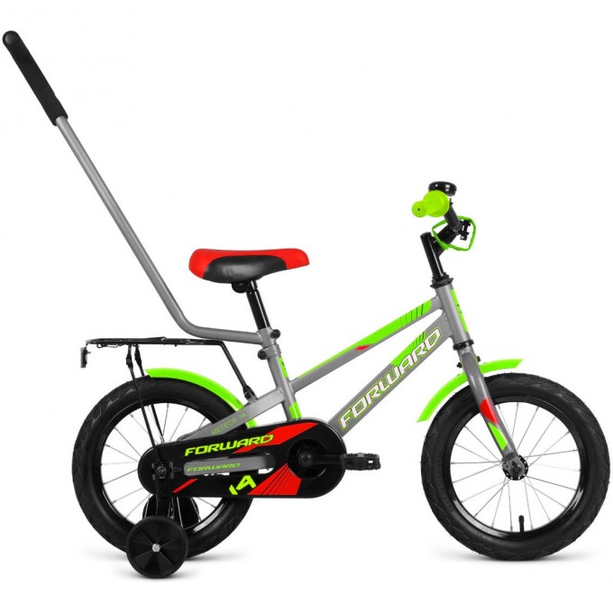 Велосипед FORWARD METEOR 14 (2022) серый/зеленый 94616 SERYII/ZELENYII